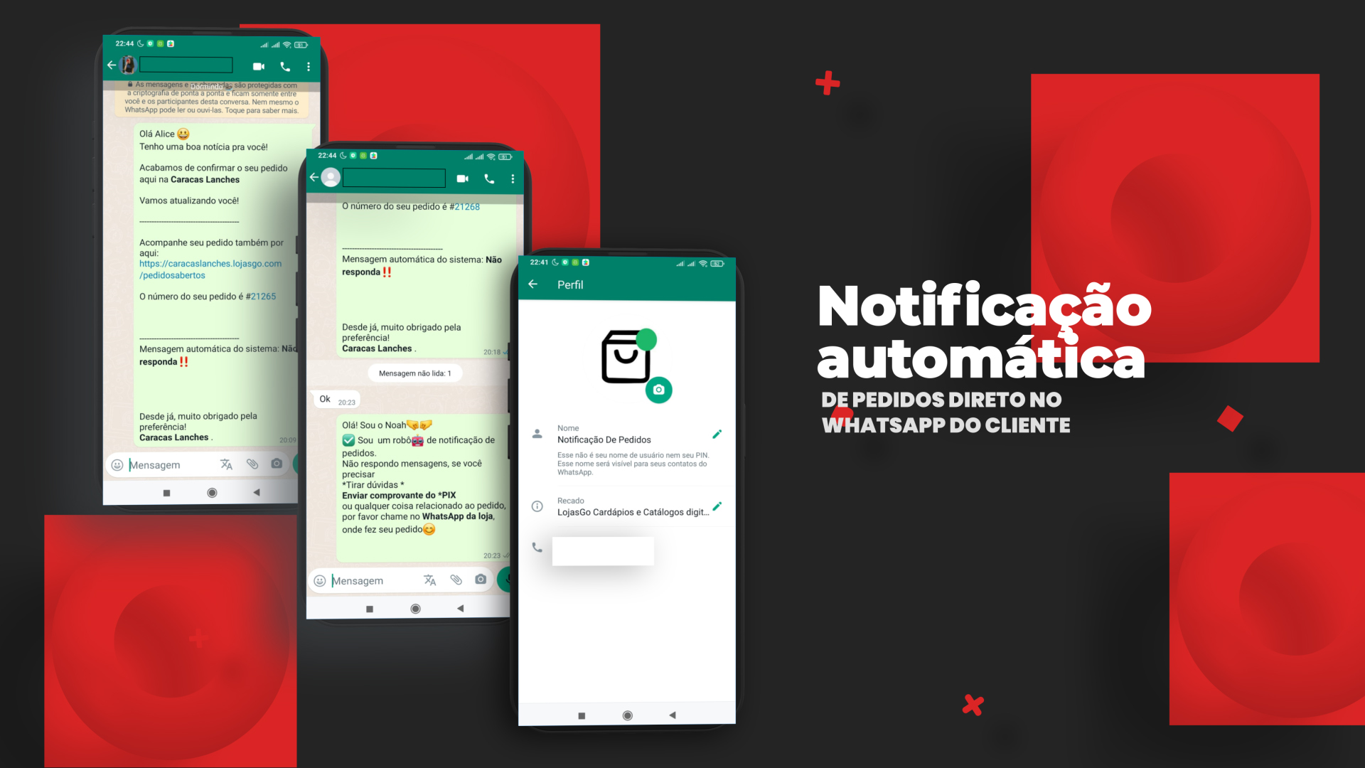 Assim que você muda o status do pedido, o cliente recebe um aviso no Whatsapp .